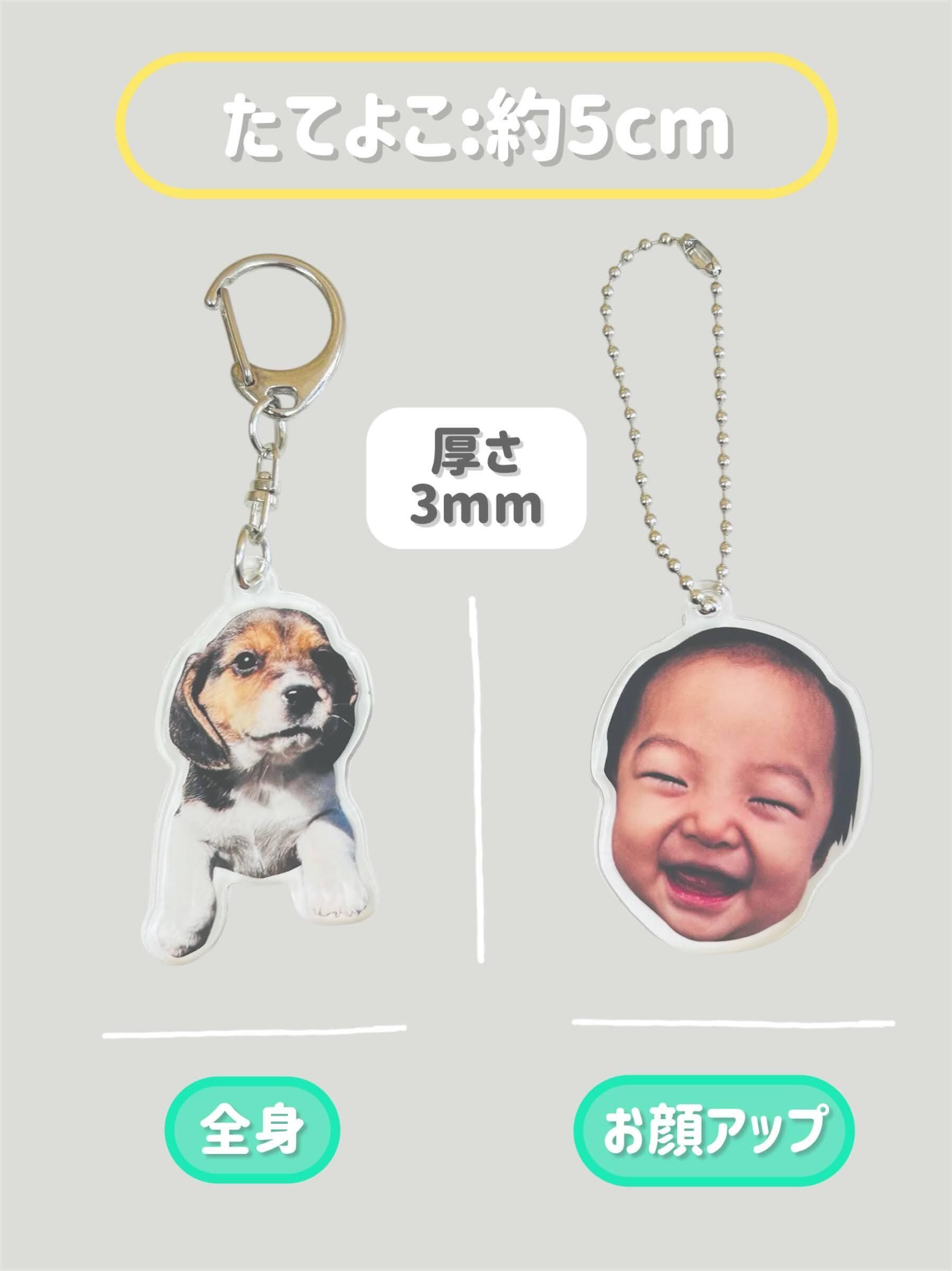 キーホルダーは全身かお顔アップのどちらかがお選びいただけます。